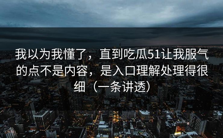 我以为我懂了,直到吃瓜51让我服气的点不是内容,是入口理解处理得很细(一条讲透)我一直以为懂得如何写好内容,只要信息到位、逻辑清楚,读者自然能接收。直到看到吃瓜51的做法,才意识... 我以为我懂了,直到吃瓜51让我服气的点不是内容,是入口理解处理得很细(一条讲透)